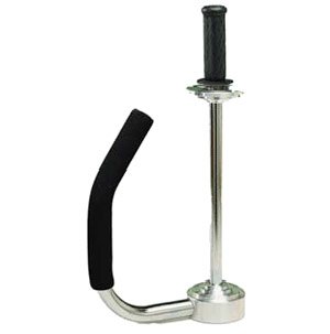 Стержень металлического диспенсера проходит через втулку рулона стрейч-пленки насквозь, фиксируется через шайбы на стержне, зажимается резьбовой ручкой. Натяжение пленки регулируется затяжкой или ослаблением резьбовой ручки.
