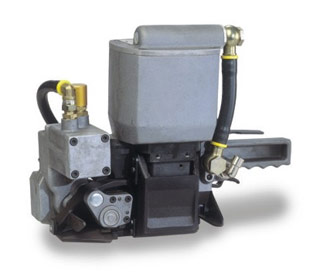натяжение ленты, скрепление при помощи просечки , отрезание ленты.