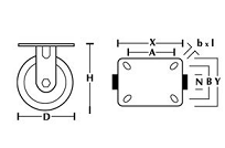 | Диаметр, D | Ширина шинки, N | Высота, Н | Размер площадки, XxY | Расположение отверстий, AxB | Размеры отверстий, bxl | |||