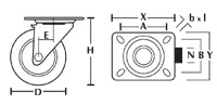 Колеса большегрузные поворотные, обод — высокопрочный пластик, полиамидный контактный слой, платформенное крепление. Подшипник — шариковый, смазанный долговечной смазкой.
