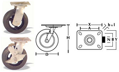 КОЛЕСА БОЛЬШЕГРУЗНЫЕ ОБРЕЗИНЕННЫЕ ПОВОРОТНЫЕ И ПОВОРОТНЫЕ С ТОРМОЗОМ