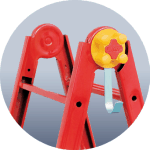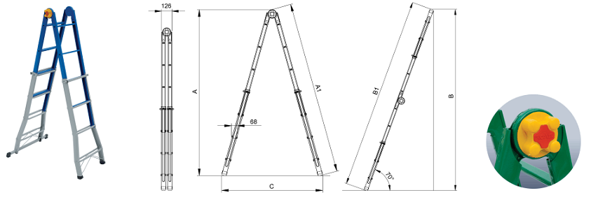 - Телескопическое пошаговое выдвижение наружной части стремянки от перекладины до перекладины позволяет приспособить стремянку к разным условиям работы