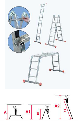 - Стремянка из четырех частей, которая облегчает работу в сложных условиях