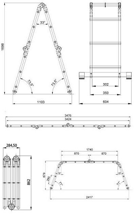 - Может применятся как приставная лестница, двухсторонняя стремянка или как рабочая платформа (Плюс Арт.№ 123510)
