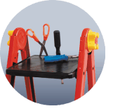 - Несколькими движениями руки из внутренней и наружной части стремянки можно создать отдельную двойную напольную стремянку, которую посредством бруса каменщика можно превратить в рабочий стол или рабочую подставку