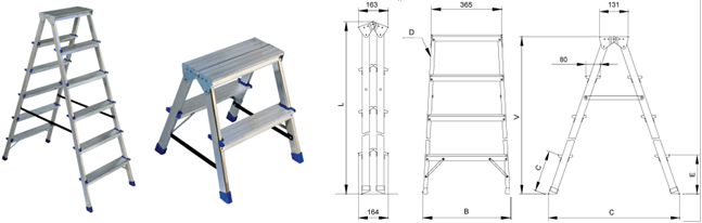 - Двусторонняя напольная алюминиевая стремянка с двумя поясами безопасности