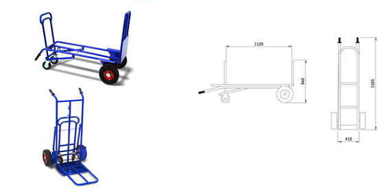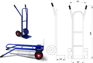 Уникальная тележка трансформер серии ТГУ-300, имеет три рабочих положения: стандартное, вертикальное, горизонтальное. Тележка получает четыре точки опоры, что позволяет перевозить крупногабаритные и тяжелые грузы с наименьшим усилием.