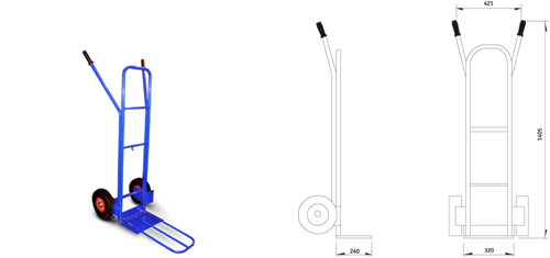 Двухколесная тележка КГ(150, 250, 350) подойдет для перевозки как больших, так и мелких упакованных грузов. Колеса диаметром 250 мм, обеспечивают легкость хода. Резиновая ручка с рифлением удобна для ежедневной работы.