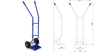 Тележка КГ-150АЛ предназначена для перевозки штучных грузов и грузов в транспортной таре. Тележка 2-х колесная алюминиевая. Колеса пневматические камерные диаметром 250 мм. Подходит для перевозки газовых и других баллонов