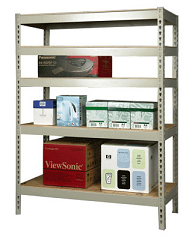 Для хранения различной продукции в складах или архивах широко используется усиленный стеллаж. Конструкция легко собирается в ленты, большая надежность достигается креплением друг к другу и полу.
