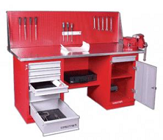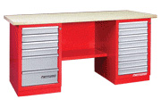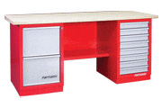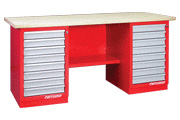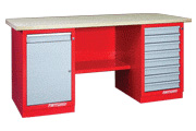 Верстак двухтумбовый,тумба с дверцей,ящиком и тумба с 4 ящиками и ц/з. Габаритные размеры:1900x686x845h |